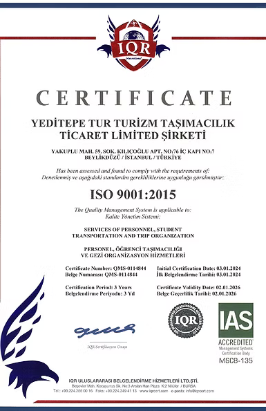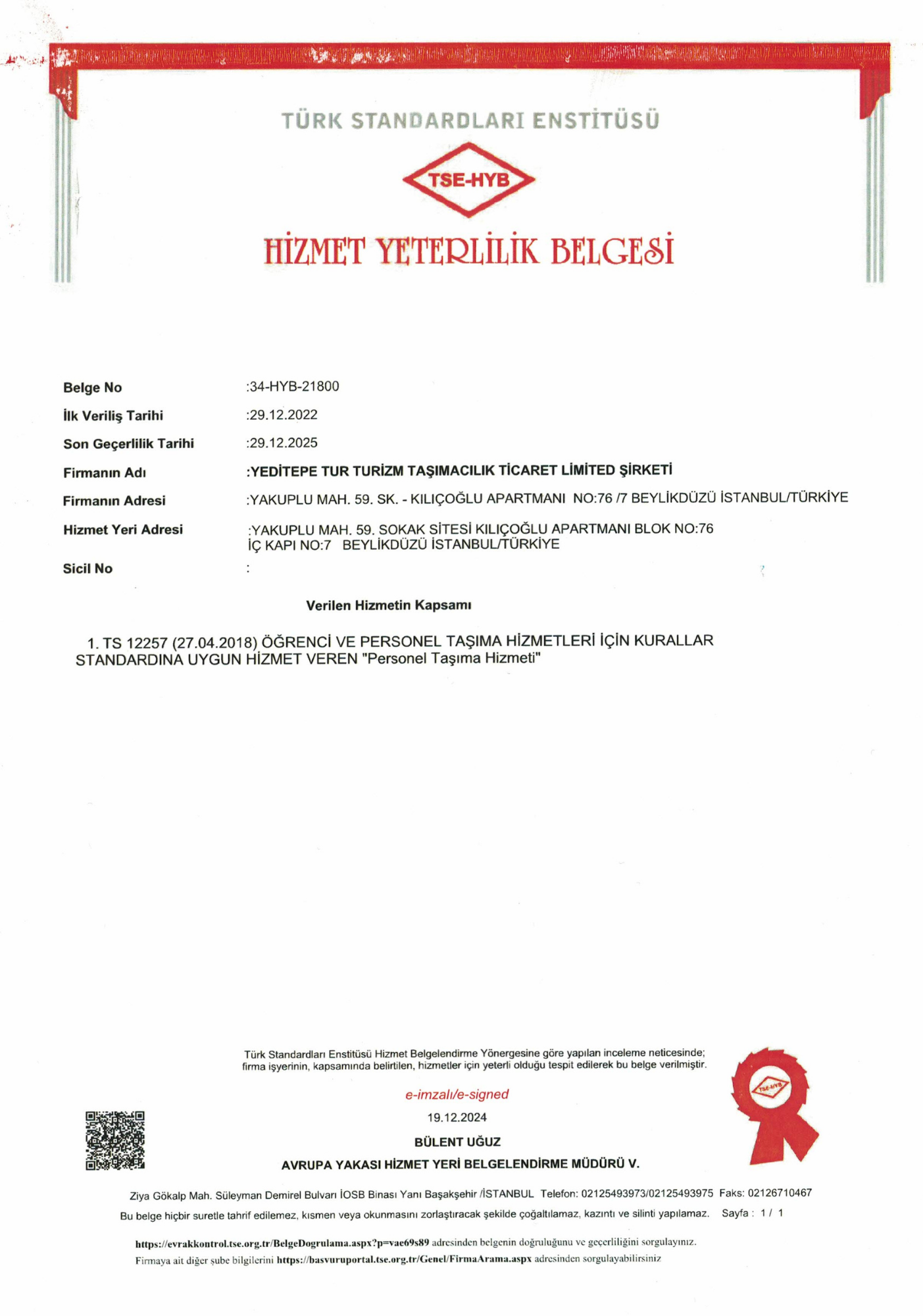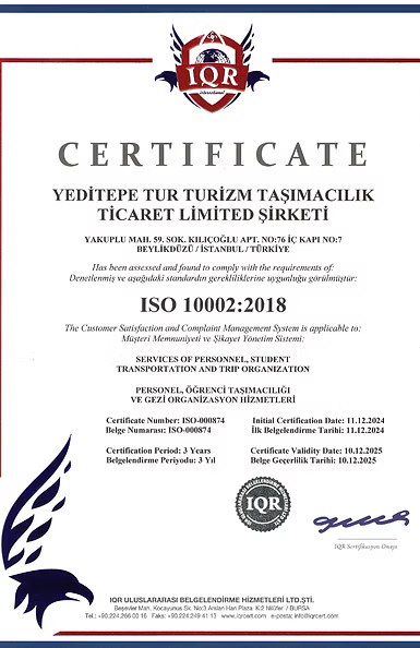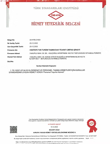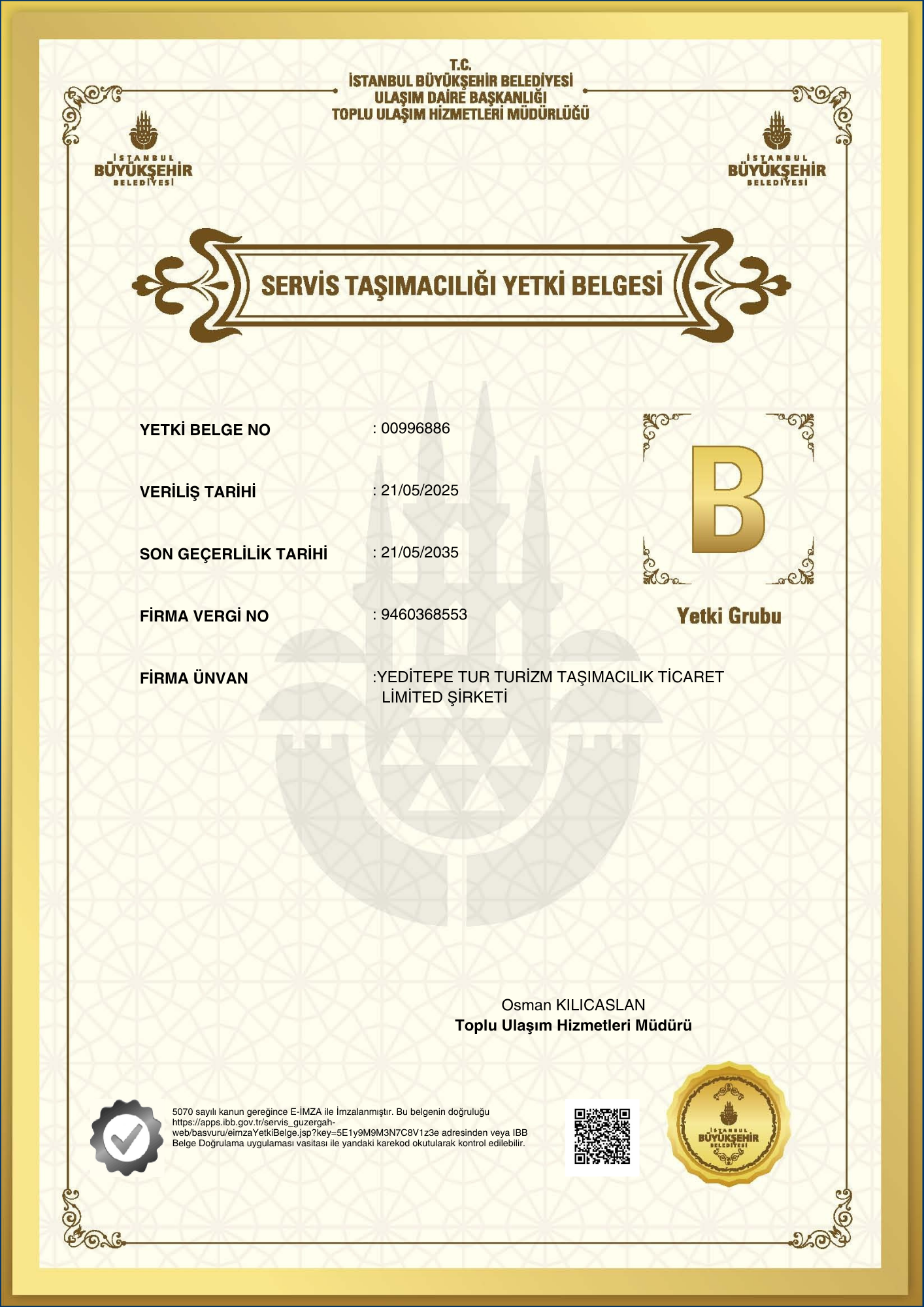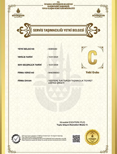Belgelerimiz, hizmet kalitemizin ve sorumluluklarımızın resmi kanıtıdır. Yeditepe Tur Turizm olarak sektörde liderliğimizi sürdürmek için çalışmaya devam ediyoruz.